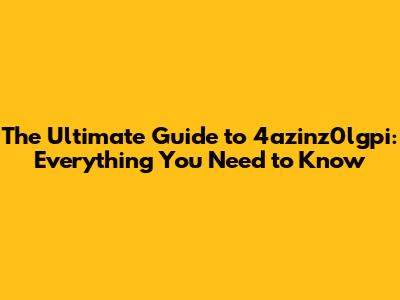 The Ultimate Guide to 4azinz0lgpi: Everything You Need to Know