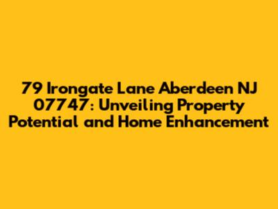 Hey there, property enthusiasts! Let's dive deep into the world of 79 Irongate Lane, Aberdeen, NJ 07747. This isn't just about a specific address; it's about understanding the potential of a property and how you can enhance your living space. Whether you're a potential homeowner, a seasoned investor, or simply curious about real estate in this area, you're in the right place. We'll explore everything from property values and neighborhood insights to home improvement ideas, all tailored to 79 Irongate Lane and its surroundings. Get ready to transform your understanding of this address and its exciting possibilities!