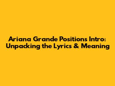 Hey guys! Ever since Ariana Grande dropped "Positions," we've all been hooked, right? But let's be real, the intro alone had us hitting repeat a million times. So, what's the deal with that catchy intro and what's Ariana trying to tell us? Let's dive deep into the lyrics, the meaning, and all the juicy details surrounding the intro of "Positions."