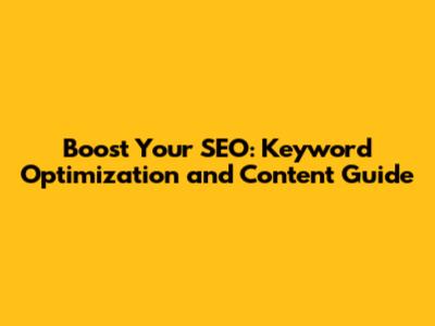 Boost Your SEO: Keyword Optimization And Content Guide