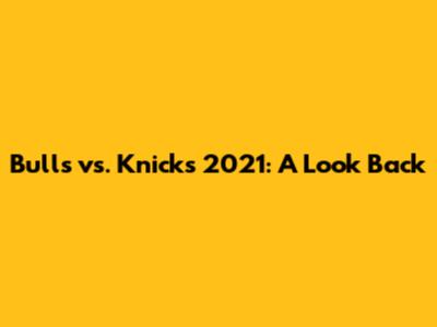 Bulls Vs. Knicks 2021: A Look Back