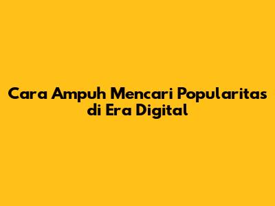 Cara Ampuh Mencari Popularitas Di Era Digital