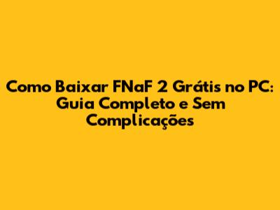 Como Baixar FNaF 2 Grátis No PC: Guia Completo E Sem Complicações