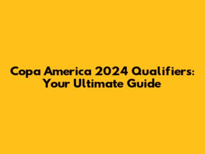 Copa America 2024 Qualifiers: Your Ultimate Guide