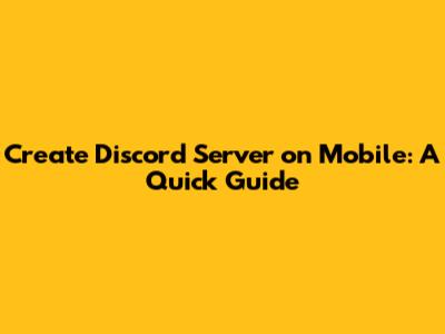 Create Discord Server On Mobile: A Quick Guide
