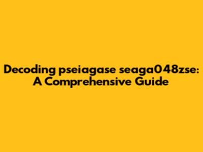 Decoding Pseiagase Seaga048zse: A Comprehensive Guide