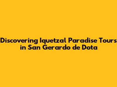 Hey guys, if you're dreaming of an unforgettable adventure into the heart of Costa Rica's cloud forests, then you've absolutely got to check out Iquetzal Paradise Tours in San Gerardo de Dota! This place is a real hidden gem, and I'm stoked to share my experience and everything you need to know to make your trip epic. Seriously, get ready to be blown away by the beauty of this place. We're talking lush green landscapes, the chance to spot the elusive resplendent quetzal, and an experience that'll stay with you long after you've left.