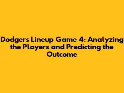 Dodgers Lineup Game 4: Analysis & Predictions
