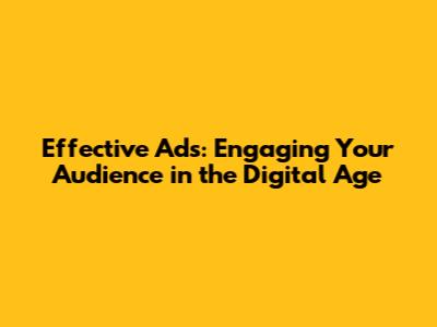 Effective Ads: Engaging Your Audience In The Digital Age