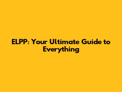 ELPP: Your Ultimate Guide To Everything