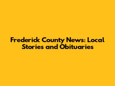 Frederick County News: Local Stories And Obituaries