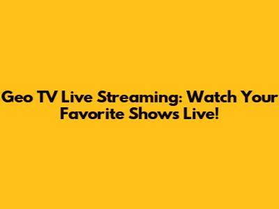 Geo TV Live Streaming: Watch Your Favorite Shows
