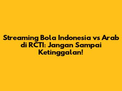 Jadi, tunggu apa lagi? Streaming bola Indonesia vs Arab di RCTI+ sekarang juga dan rasakan keseruannya! Jangan sampai ketinggalan momen-momen penting dan saksikan perjuangan Timnas Indonesia mengharumkan nama bangsa. Selamat menonton dan semoga Timnas Indonesia menang!