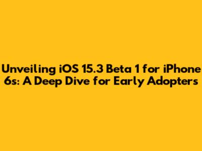 What's up, tech enthusiasts! Today, we're diving deep into the world of beta software, specifically focusing on iOS 15.3 Beta 1 for the iPhone 6s. If you're rocking one of these classic devices and love being on the cutting edge, you're in the right place. We're going to break down what this update brings to the table, who it's for, and whether you should jump on board. Remember, beta software is all about testing and providing feedback, so it's not for the faint of heart or those who need their device to be perfectly stable 24/7. But for the adventurous souls among us, it's a thrilling glimpse into the future of iOS. Let's get this party started and explore the nitty-gritty of iOS 15.3 Beta 1 on the iPhone 6s.