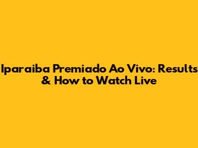 Iparaiba Premiado Ao Vivo: Results & How To Watch Live