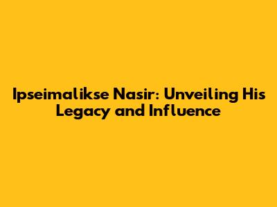 Ipseimalikse Nasir: A Deep Dive Into His Life & Work
