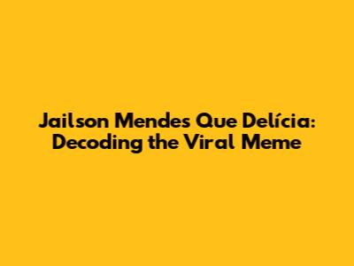 Jailson Mendes 'Que Delícia': The Hilarious Meme Explained