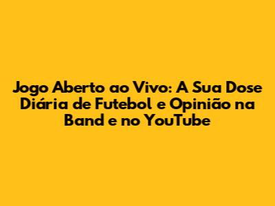 Se você é fã de futebol, não pode perder o Jogo Aberto. O programa oferece as últimas notícias, análises aprofundadas, entrevistas com os principais personagens do futebol e debates acalorados. Fique ligado na TV Bandeirantes e no YouTube, e prepare-se para acompanhar tudo o que acontece no mundo da bola. O Jogo Aberto é a sua dose diária de futebol, com muita informação, opinião e entretenimento.