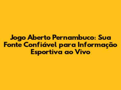 Como e Onde Assistir ao Jogo Aberto Pernambuco ao Vivo