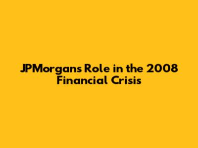 JPMorgan's Role In The 2008 Financial Crisis