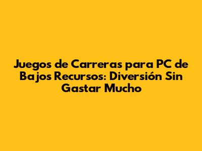 Juegos De Carreras Para PC De Bajos Recursos: Diversión Sin Gastar Mucho