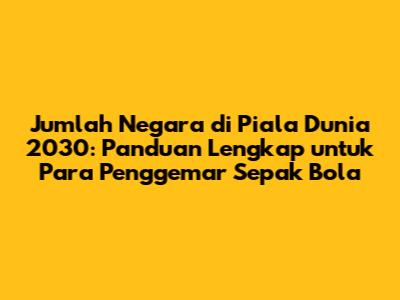 Guys, kita semua penggila bola pasti udah gak sabar nungguin Piala Dunia 2030! Tapi, pernah gak sih kalian kepikiran, berapa banyak negara sih yang bakal unjuk gigi di panggung sepak bola dunia nanti? Nah, artikel ini bakal ngebahas tuntas soal jumlah negara peserta, format kompetisi, dan segala hal menarik lainnya seputar Piala Dunia 2030. Yuk, simak terus!