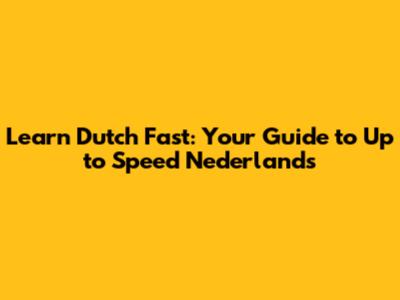 Learn Dutch Fast: Your Guide To Up To Speed Nederlands