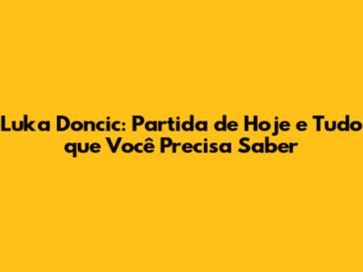 Luka Doncic: Partida De Hoje E Tudo Que Você Precisa Saber