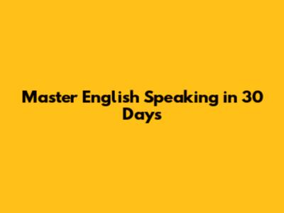 Master English Speaking In 30 Days