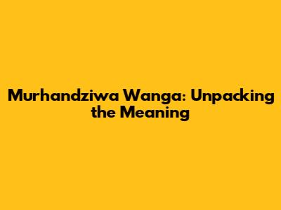 Murhandziwa Wanga: Unpacking The Meaning