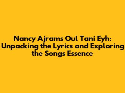 Hey everyone, let's dive into the world of Nancy Ajram and her incredibly popular song, "Oul Tani Eyh"! This song has captured the hearts of many, and today, we're going to break down the lyrics, understand their meaning, and explore why it resonates so deeply with so many people. Get ready to explore the English translation of the lyrics and the emotions that this beautiful Arabic song evokes. We'll be looking at the song's popularity, Nancy Ajram's career, and the cultural context surrounding the song. Grab your coffee (or tea!), sit back, and let's get started!