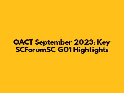 OACT September 2023: Key SCForumSC G01 Highlights