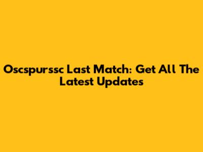 Oscspurssc Last Match: Latest Updates