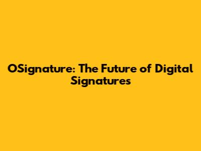 OSignature: The Future Of Digital Signatures