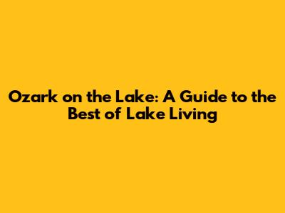 Ozark On The Lake: A Guide To The Best Of Lake Living