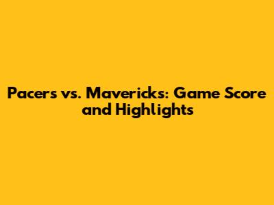 Pacers Vs. Mavericks: Game Score And Highlights
