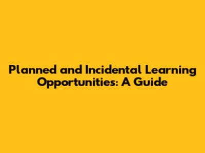 Planned And Incidental Learning Opportunities: A Guide