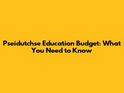Pseidutchse Education Budget: What You Need To Know