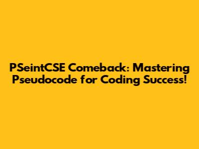 PSeintCSE Comeback: Mastering Pseudocode For Coding Success!