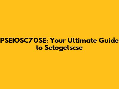 PSEIOSC70SE: Your Ultimate Guide To Setogelscse