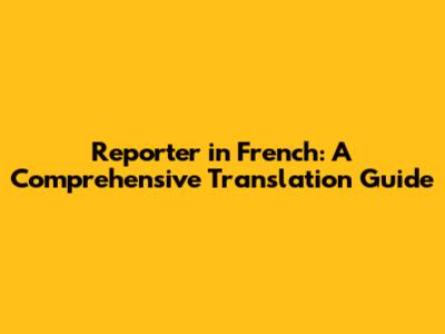 Reporter In French: A Comprehensive Translation Guide