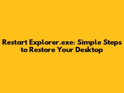 Restart Explorer.exe: Simple Steps To Restore Your Desktop