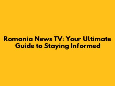 Romania News TV: Your Guide To Staying Informed
