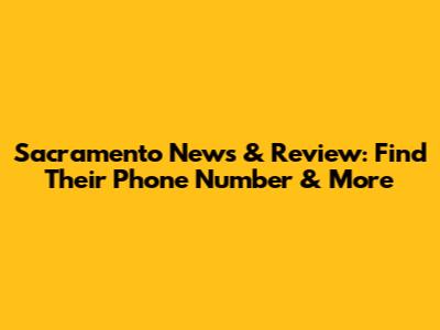 Sacramento News & Review: Find Their Phone Number & More