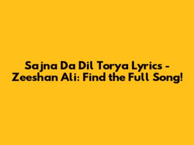 Sajna Da Dil Torya Lyrics - Zeeshan Ali: Find The Full Song!