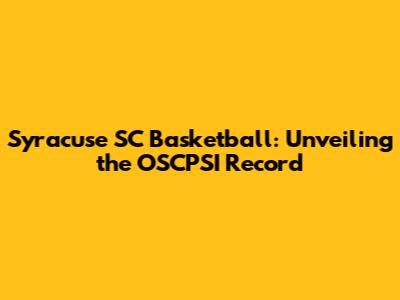 Syracuse SC Basketball: Unveiling The OSCPSI Record