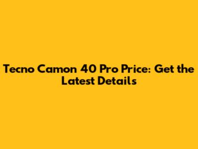 Tecno Camon 40 Pro Price: Get The Latest Details