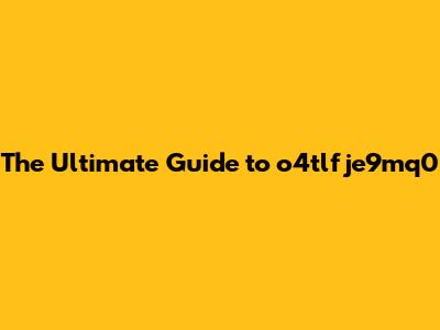 The Ultimate Guide To O4tlfje9mq0