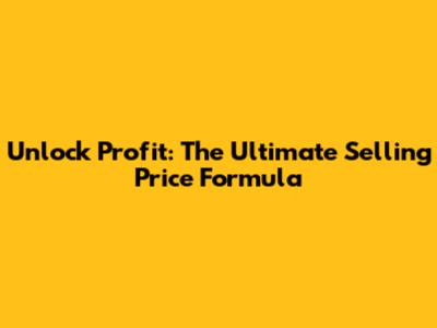Unlock Profit: The Ultimate Selling Price Formula