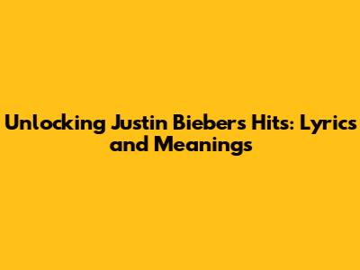 Unlocking Justin Bieber's Hits: Lyrics And Meanings